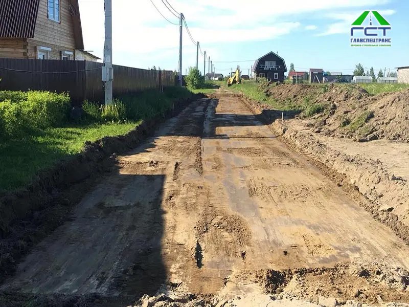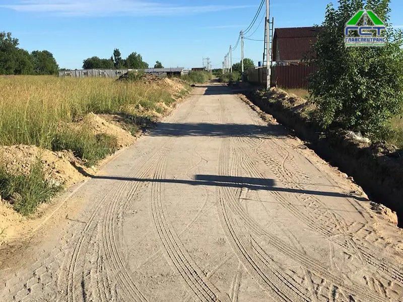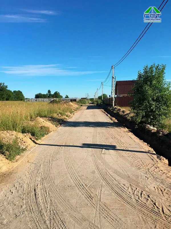 - Отсыпка основания дороги ПГС с толщиной слоя 20-25 см;
